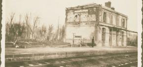 La 2e division blindée du général Leclerc, après avoir libéré Alençon le 12 août au petit matin, poursuit sa route vers le Nord et arrive devant Ecouché après 22 heures le même jour. La ville est libérée le 13 à l’aube. Cependant, elle a énormément souffert des bombardements du mois de juin comme en témoignent les photographies présentées ici. Ainsi, le 6 juin, la gare est visée par l’aviation alliée et environ un tiers de la ville est détruite. Les victimes civiles sont très nombreuses (44 morts au moins).