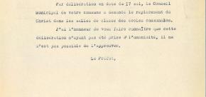 Rappelons que, sur ce thème, les documents présentés ne sont qu’un échantillon du fonds des Archives ; on dispose de nombreux courriers adressés par les communes à la préfecture pour faire part de leurs décisions. Les professeurs intéressés peuvent donc nous solliciter pour travailler à partir d’exemples locaux.