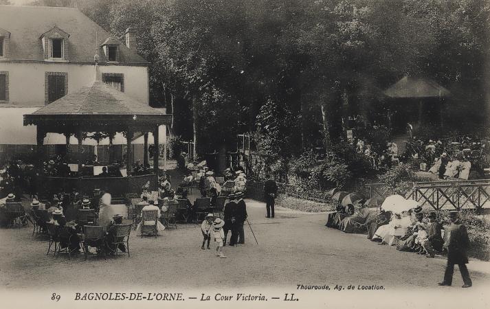 Bagnoles-de-l'Orne, la cour Victoria située entre l'établissement thermal et le grand-hôtel des thermes