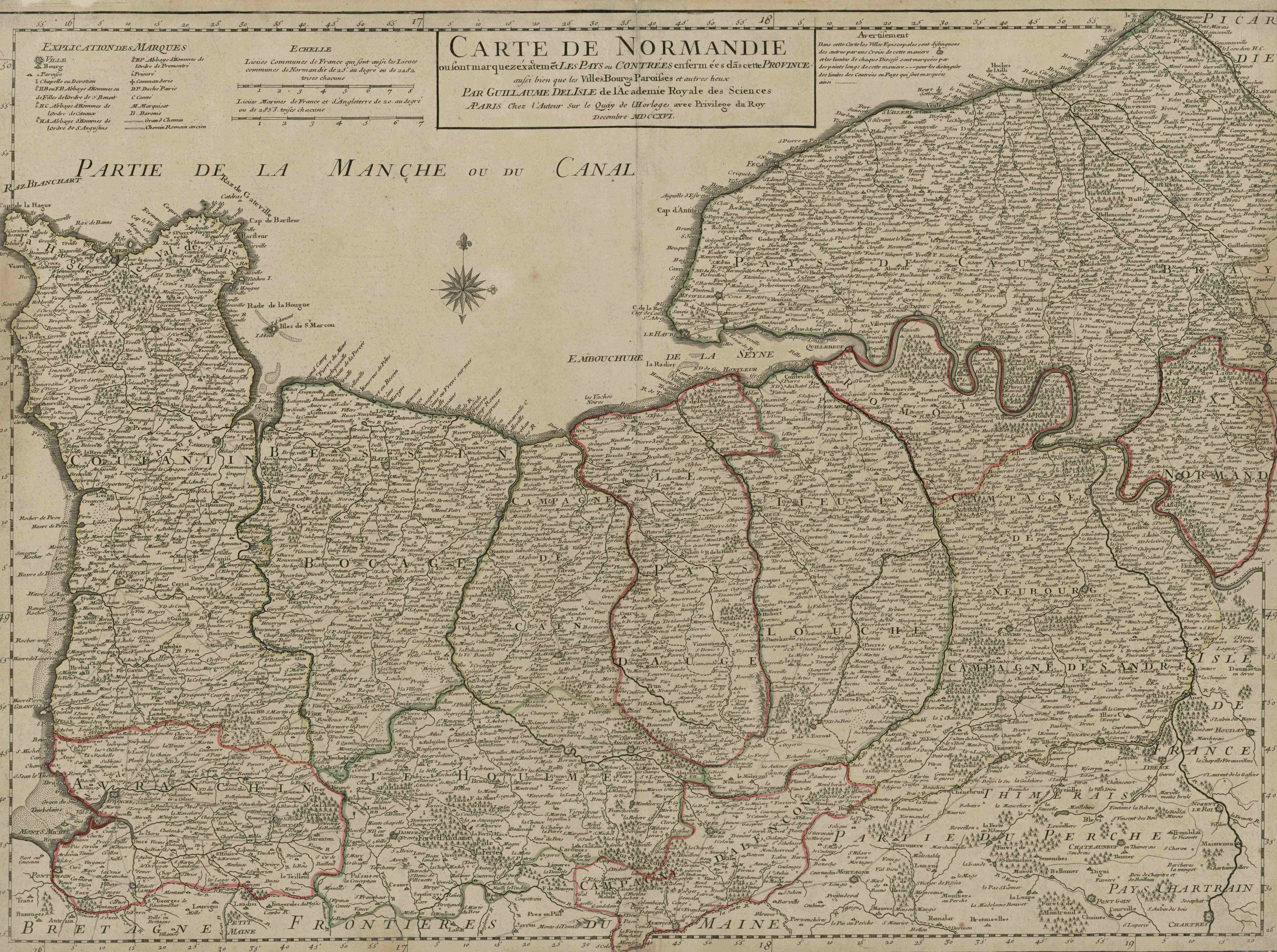 Carte de Normandie où sont marquez exactement les pays ou contrées