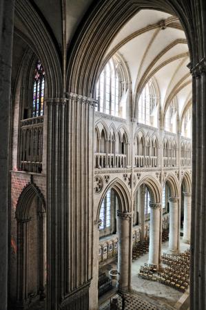 Cathédrale de Sées, élévation intérieure du mur sud de la nef et du bras sud du transept