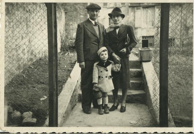 Edgard Kahn, né le 12 octobre 1907 à Merzig (Sarre), est le quatrième enfant de Julius et Ida Kahn. Après le référendum en faveur de l’annexion de la Sarre à l’Allemagne (janvier 35), tandis que ses parents et son frère Alfred se réfugient en France, il part pour la Palestine. Il est accompagné de sa femme Liesel (née Salomon), née en 1910 qu'il a épousée en octobre 1935, avant leur départ. On les voit ici tous les deux, encadrant leur première fille, Berthie, née à Tel Aviv en 1936.