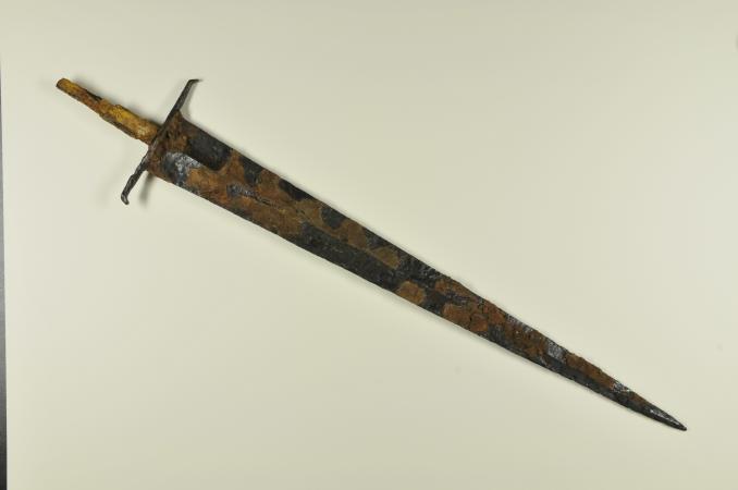 Épée trouvée sur le site du château de Domfront, XIVe s