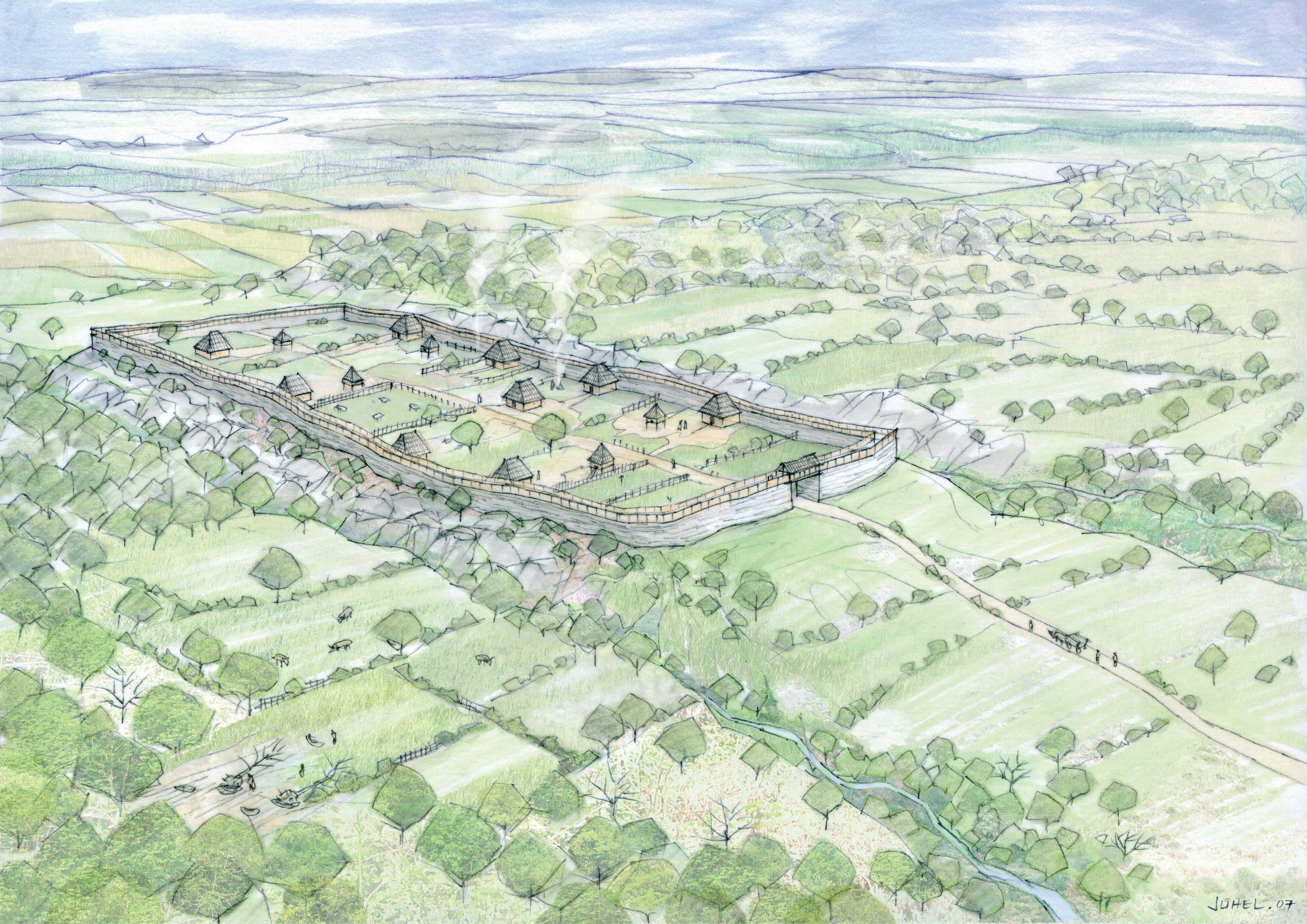Évocation du camp de Bierre à Merri au cours de la phase 2 (fin du 1er âge du fer)