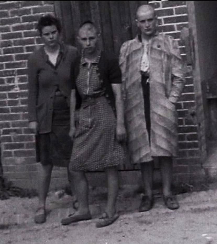 Cette photographie est une capture d'un film réalisé par un cameraman de l’armée américaine. Selon les estimations des historiens, environ 20 000 femmes, sur l’ensemble du territoire métropolitain, auraient subi ce traitement infamant en dehors de tout cadre légal. On leur reprochait le plus souvent d'avoir entretenu des relations avec un soldat allemand.