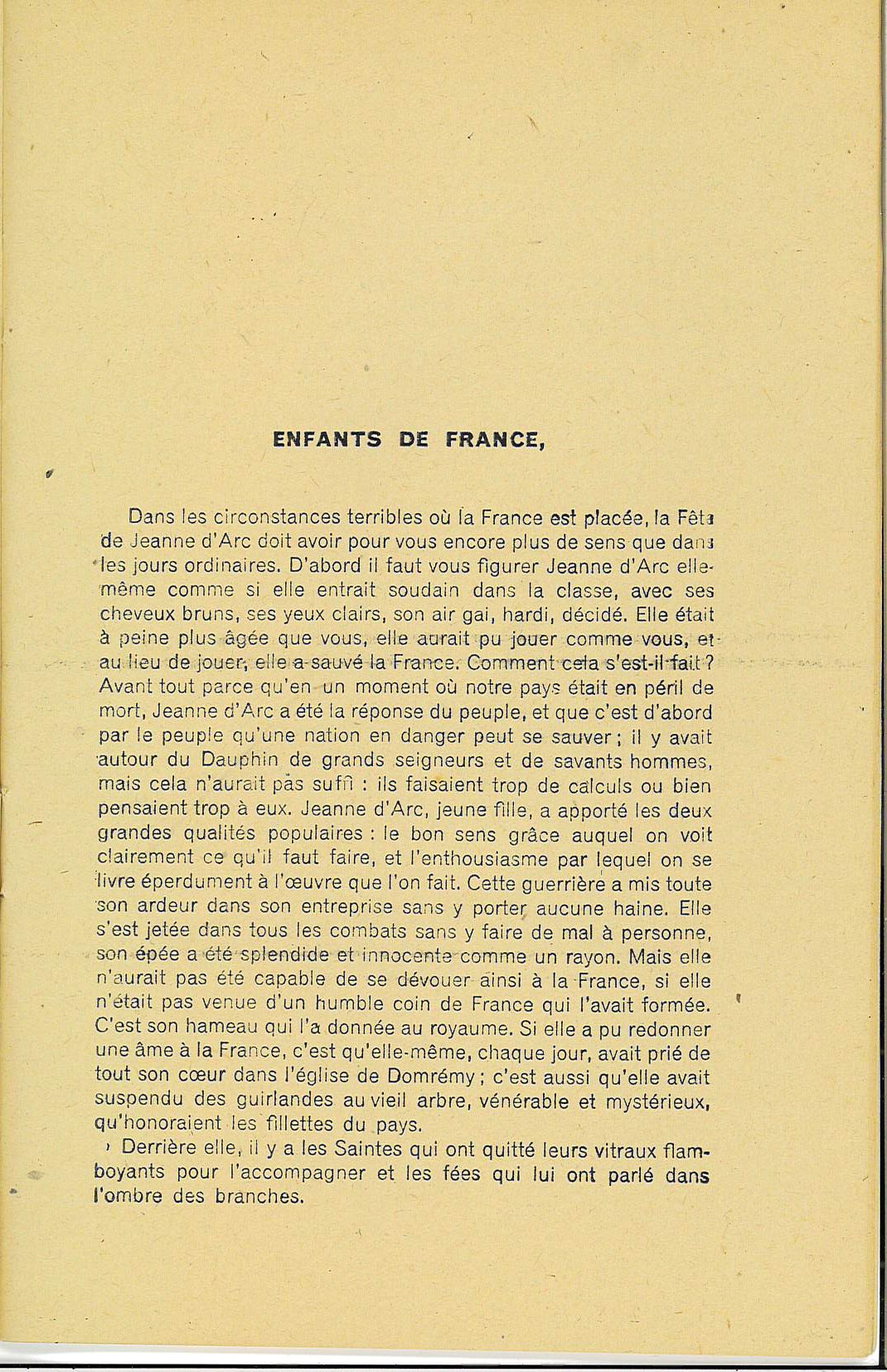 Dans ce discours, Bonnard ne fait pas référence à la lutte de Jeanne d’Arc contre les Anglais, qui est souvent mise en avant par la propagande vichyste pour déconsidérer la Grande-Bretagne. Peut-être estimait-il qu’en évoquant le combat de Jeanne contre l’occupant, on risquait de donner des arguments à ceux qui voulaient combattre les Allemands.