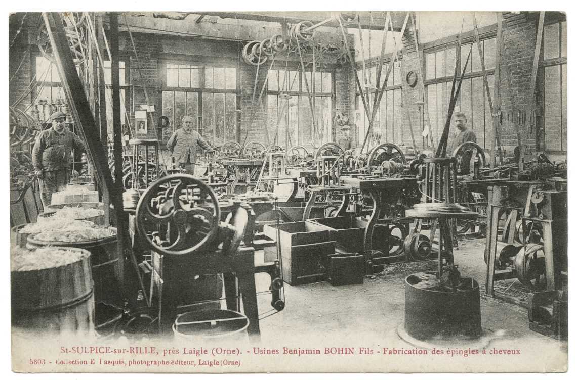 On fabrique dans les usines de Saint-Sulpice-sur-Rille, toutes les sortes d’aiguilles et d’épingles, épingles de bureau, épingles de nourrice, épingles à cheveux, etc.