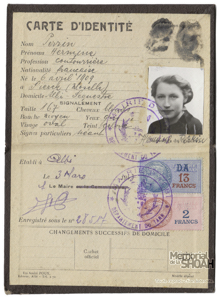 En février 1943, l’instituteur du village de Mouzieys-Teulet, qui est également secrétaire de mairie, établit de fausses cartes d’identité pour Alfred et Rosa Kahn et leur fille Béatrice. Rosa devient Hermine Perrin, née à Sierck en Moselle. Ce village se trouve tout près de la frontière allemande, à une dizaine de kilomètres de Merzig où Rosa a vécu avant son départ pour la France. On peut penser qu’elle connaissait les lieux, ce qui lui aurait permis, peut-être, de donner le change dans l’hypothèse d’un interrogatoire. En tout cas, elle devient ainsi française, ce qui permet aussi de réduire les risques en cas de contrôle policier.