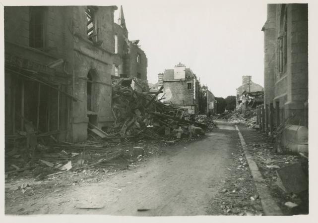 Les photographies présentées ici ont été prises à Flers après les bombardements du printemps 1944 mais on ne connaît pas avec précision la date de la prise de vue.