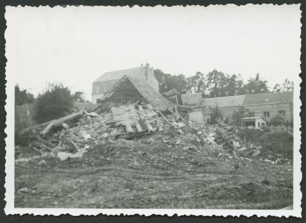 La photographie est prise au mois d'août 1944 et témoigne de l'importance des dégâts sur les immeubles d'habitation.