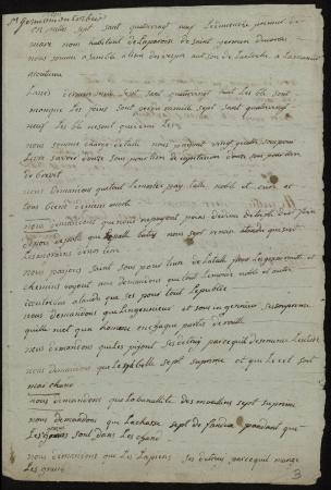 Nous demandons que nous ne payront poins de dime de trefle, de st foin, de pois, de palle ; que la palle batus nous sept remise atendu que sest les angrains de nos terres.