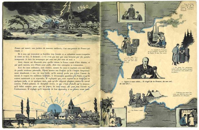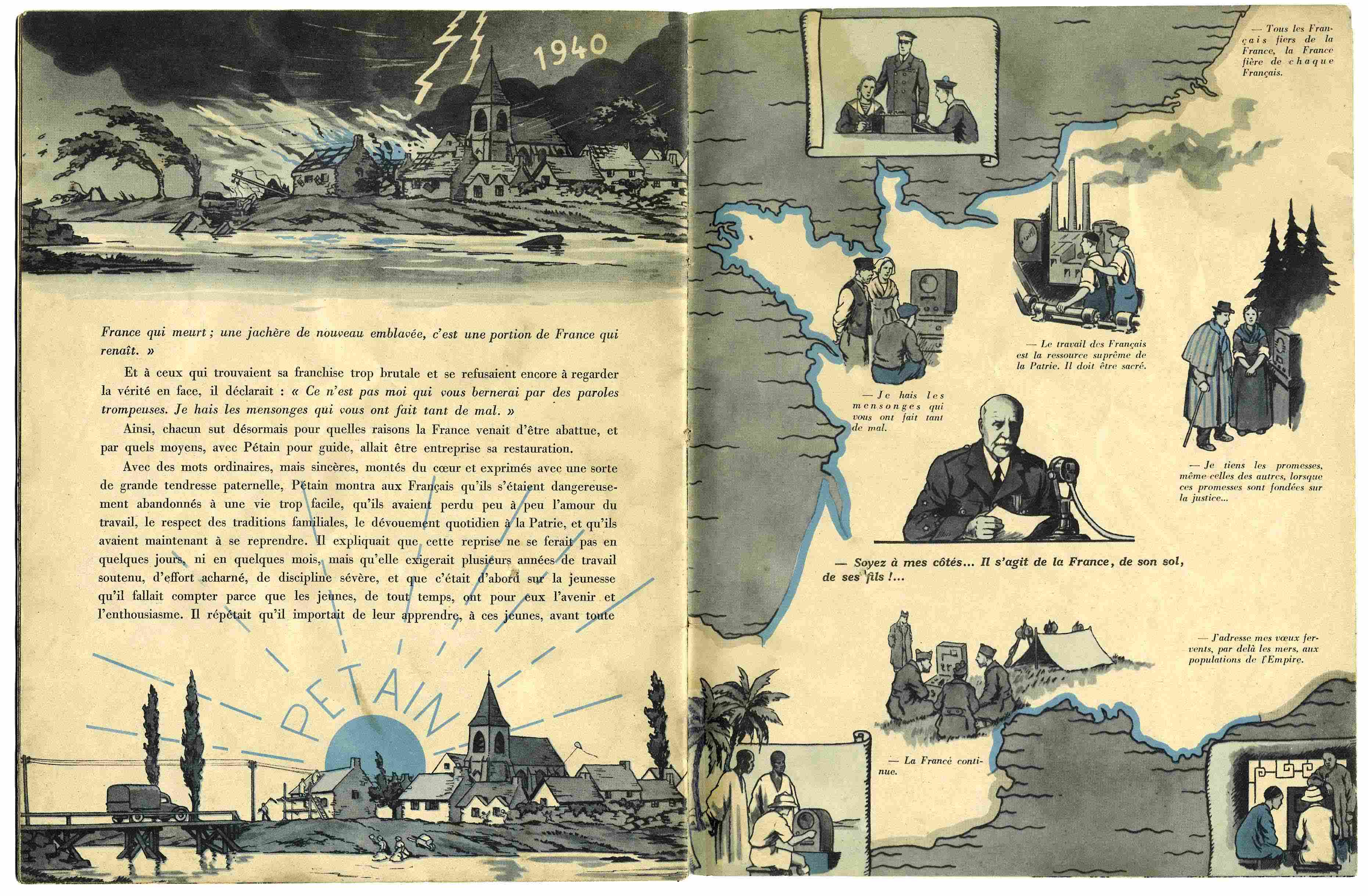 Il reprend les principales thématiques du culte du chef institué par la propagande de Vichy : l’homme simple, modeste mais résolu, le soldat dévoué à la patrie, le chef de guerre courageux et bienveillant, l’inlassable serviteur de la France, le sauveur et martyr, le guide enfin vers la renaissance de la patrie. L’album développe aussi d’autres aspects de la propagande du régime que l’on a déjà évoqués : la défaite découle de l’inconséquence des Français, ils doivent désormais retrouver les valeurs « authentiques » de la France, le travail, la famille et la patrie. Enfin, l’album se termine par une justification de la collaboration.