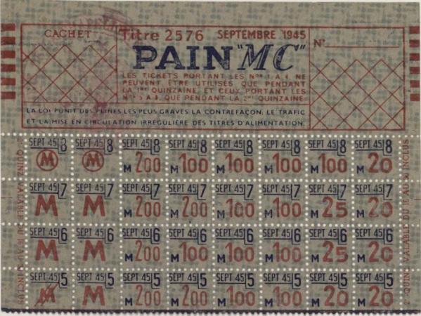 Le document présenté ici est une carte d’alimentation portant des tickets de pain.