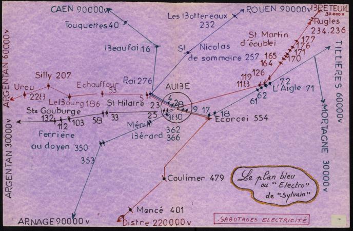 Ainsi, Ernest Voyer (« Sylvain »), ingénieur à la Société de distribution d'électricité de l'Ouest (SDEO) et membre du Bureau des Opérations Aériennes (BOA) et de l'Organisation Civile et Militaire (OCM) met au point le plan Electro, déclinaison locale du plan Bleu qui vise les infrastructures électriques. Il s’agit de paralyser le réseau électrique en sabotant régulièrement les pylônes des lignes à haute tension. Dès que le pylône est réparé, un autre est détruit. « Sylvain » fournit aux groupes de résistants les indications sur les pylônes qui doivent être détruits.