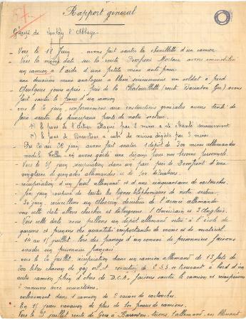 Le rapport porte sur la période comprise entre le 12 juin et le 4 août, à l’arrivée des troupes américaines à l’Ouest du département, non loin de Lonlay l’Abbaye. Le groupe fait alors partie des FFI. Depuis décembre 1943, en effet, le Comité Français de Libération Nationale (CFLN), dirigé par de Gaulle, s’efforce d’unifier tous les groupes de résistants armés au sein des FFI ; c’est chose faite au printemps 1944.