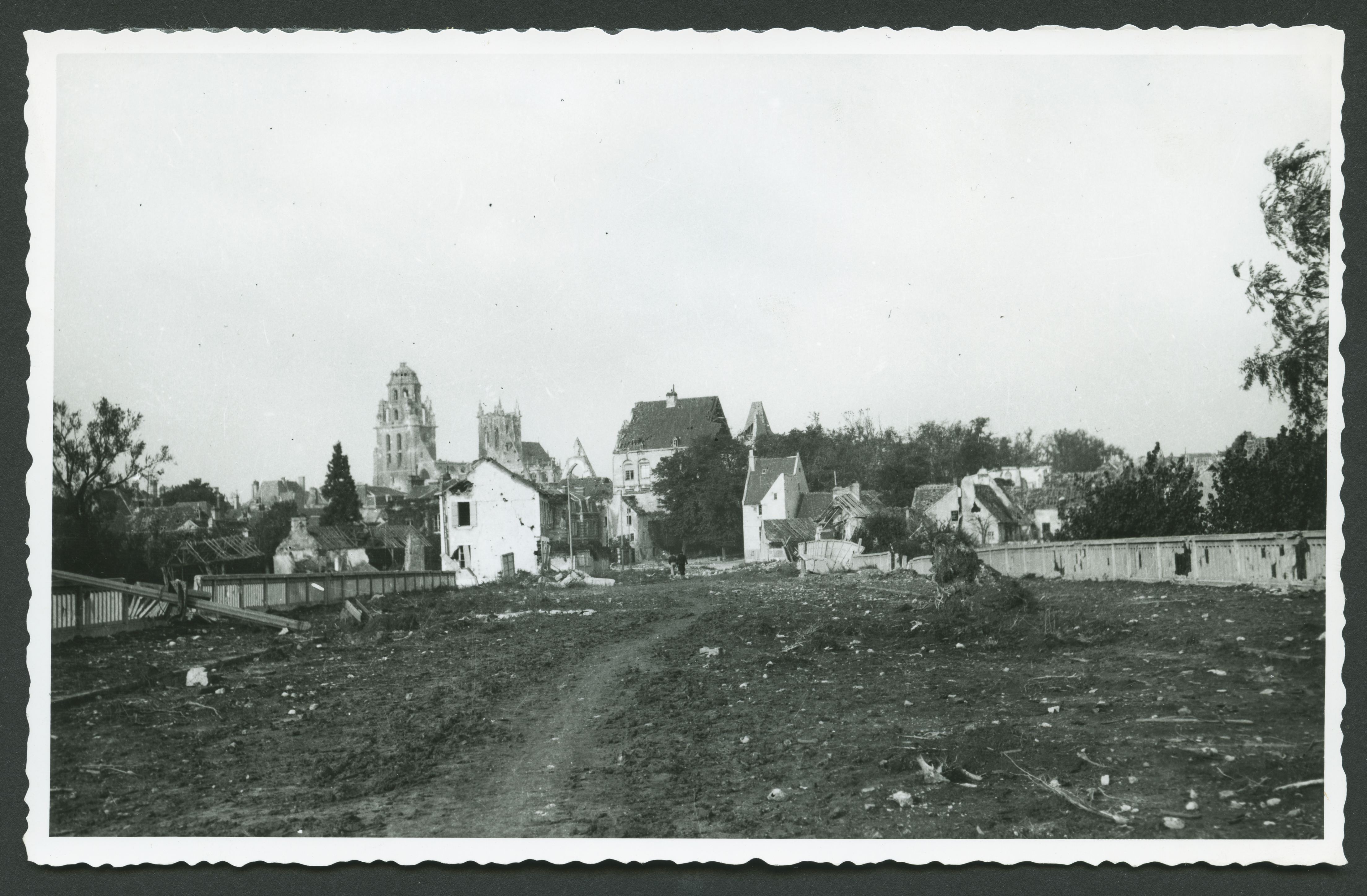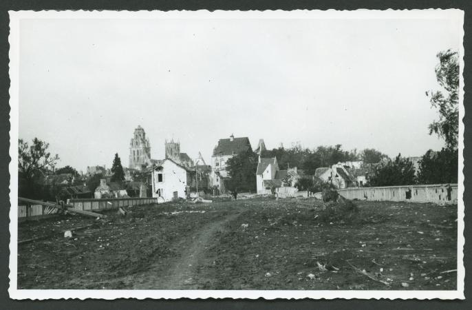 Les décombres de la ville vus depuis l'avenue de la Forêt normande