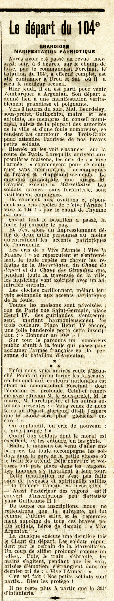 Les manifestations patriotiques pour le départ des troupes à Argentan
