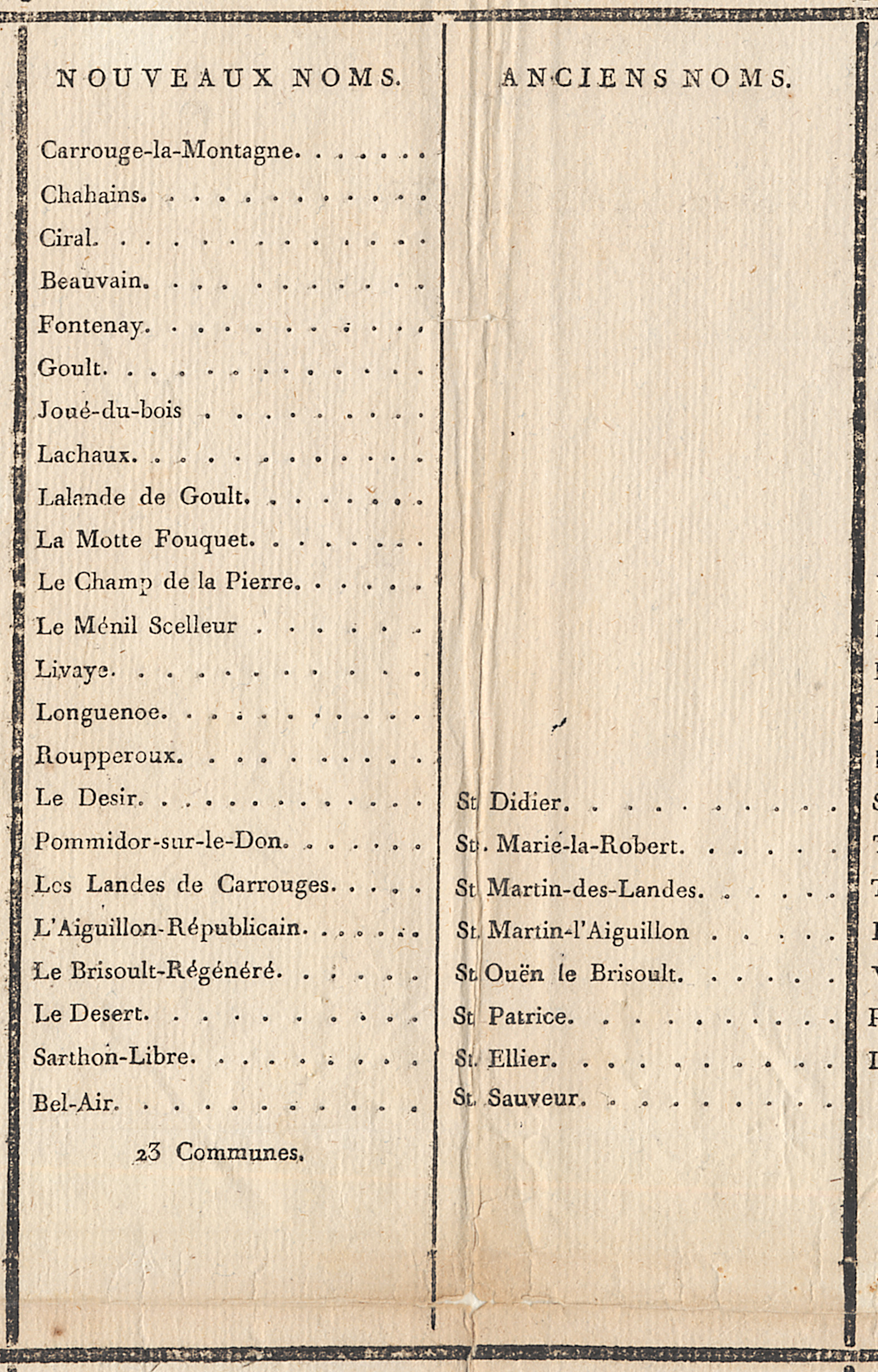 Les nouveaux noms de commune du canton de Carrouges-la-Montagne