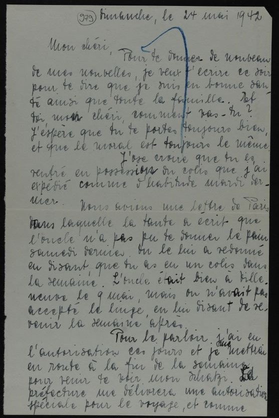 Nous avions une lettre de Paris dans laquelle la tante a écrit que l’oncle n’a pas pu te donner le pain samedi dernier. On le lui a redonné en disant que tu as eu un colis dans la semaine. L’oncle était bien à Villeneuve le 9 mai mais on n’avait pas accepté le linge, en lui disant de revenir la semaine d’après.