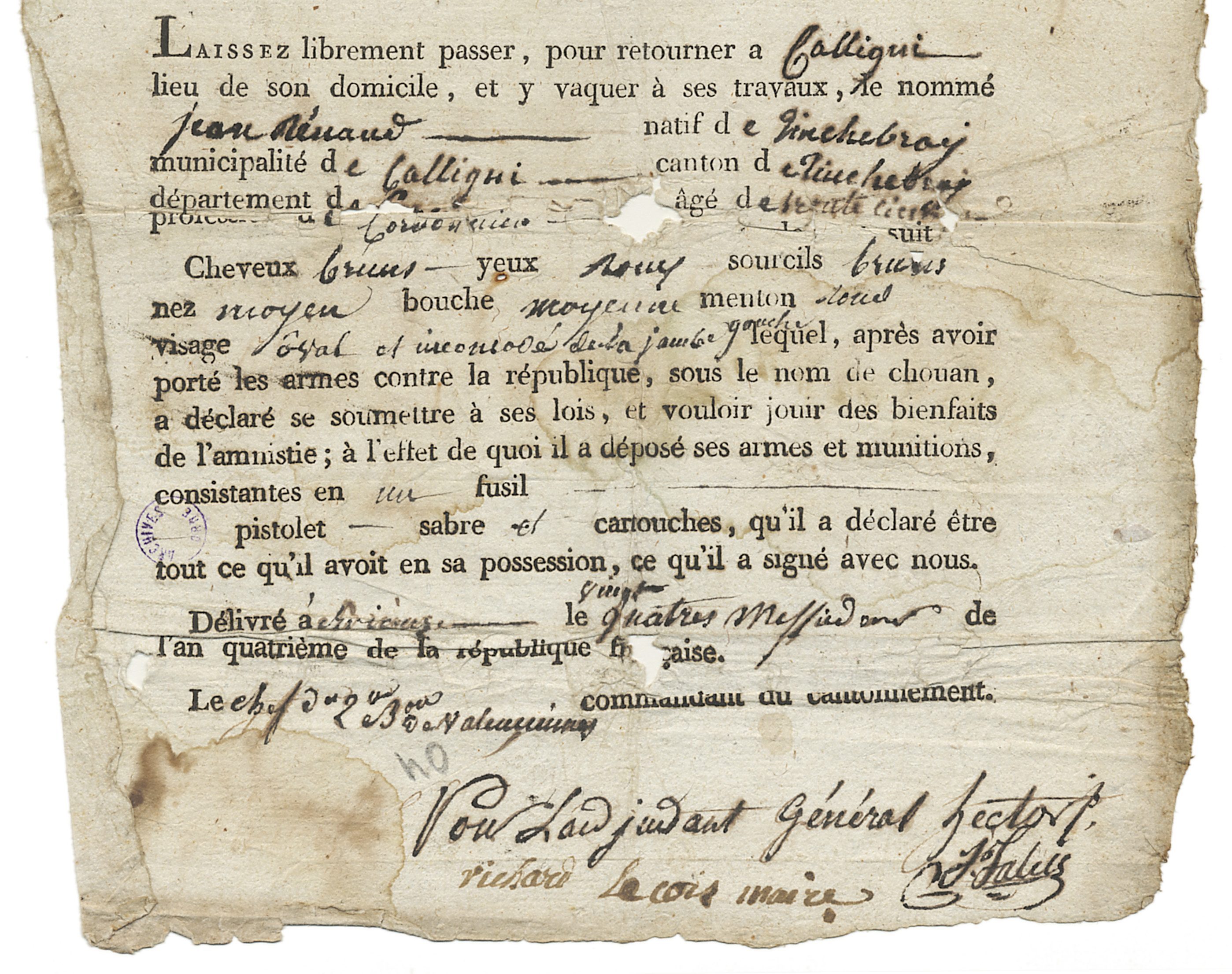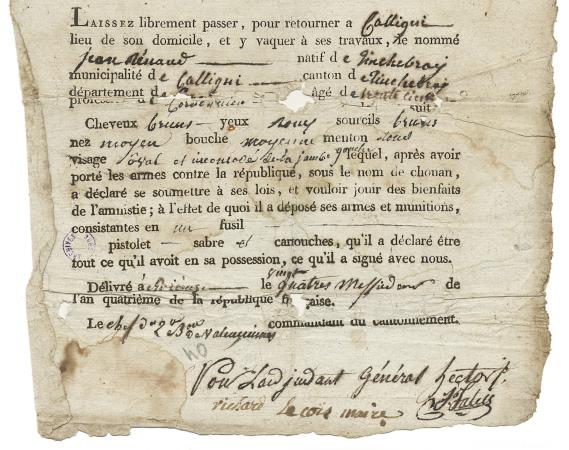 Passeport délivré à un chouan repenti