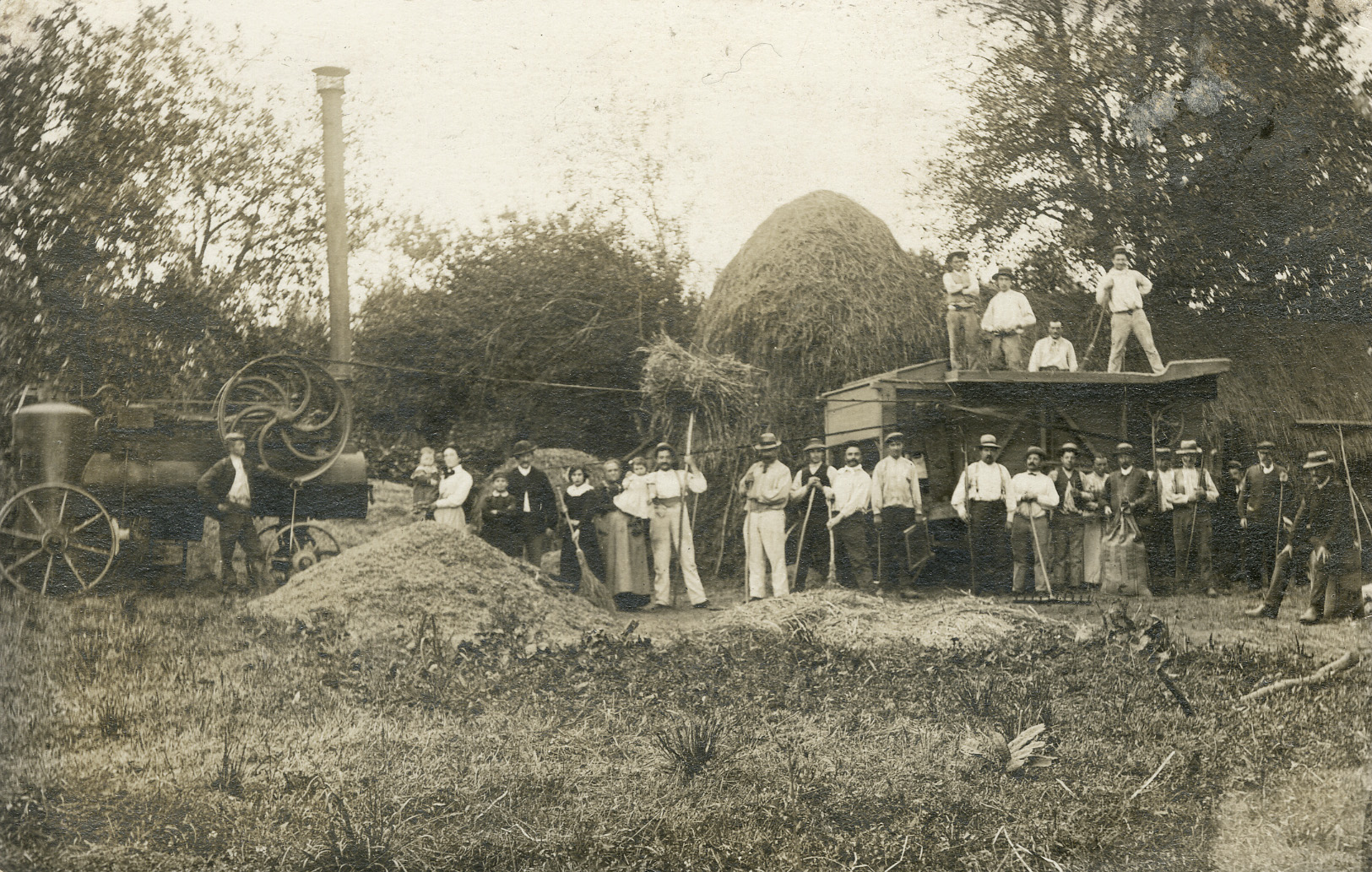 Scène de battage à Domfront, vers 1900