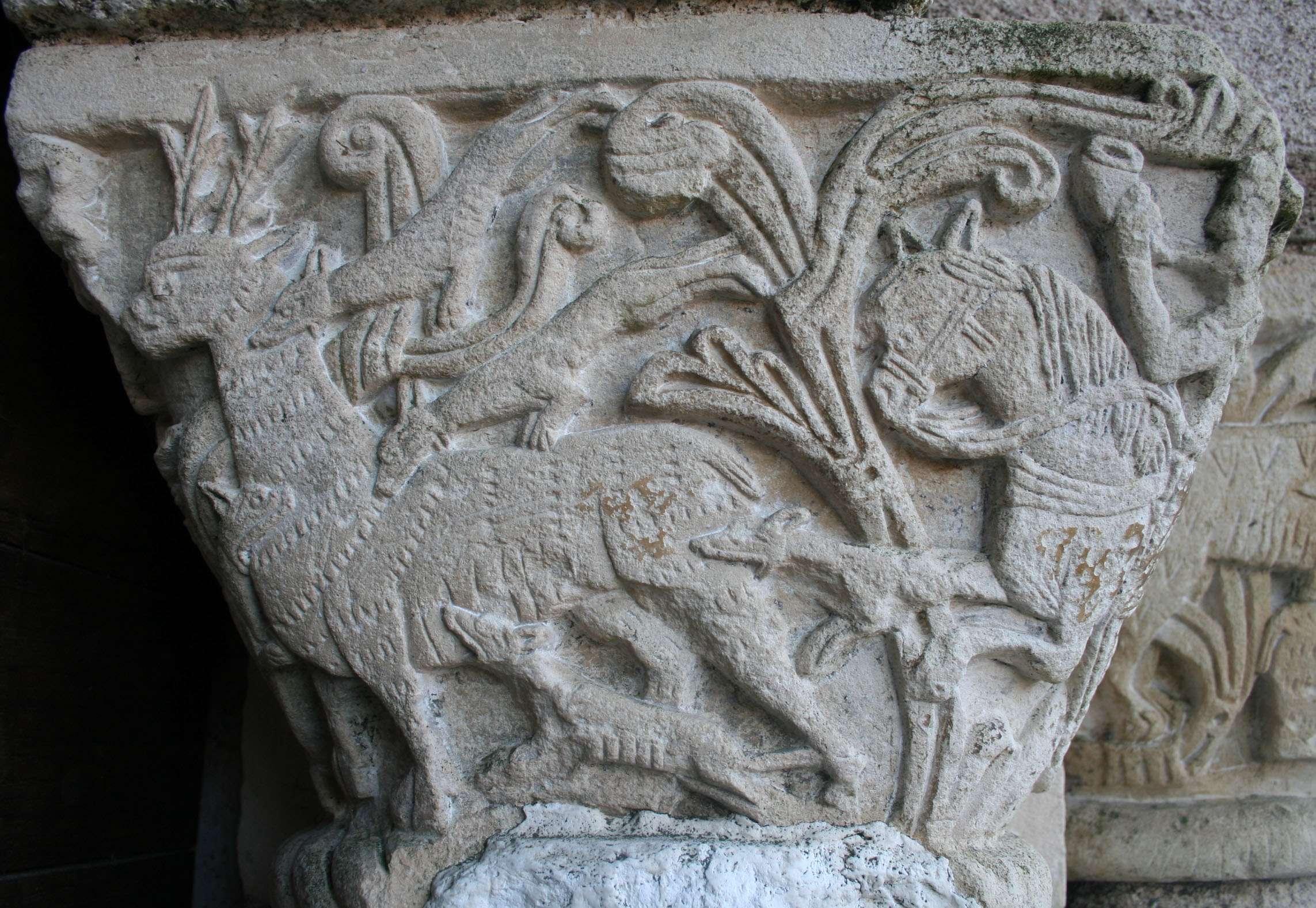 Scène de chasse à courre, prieuré de Goult, XIIe