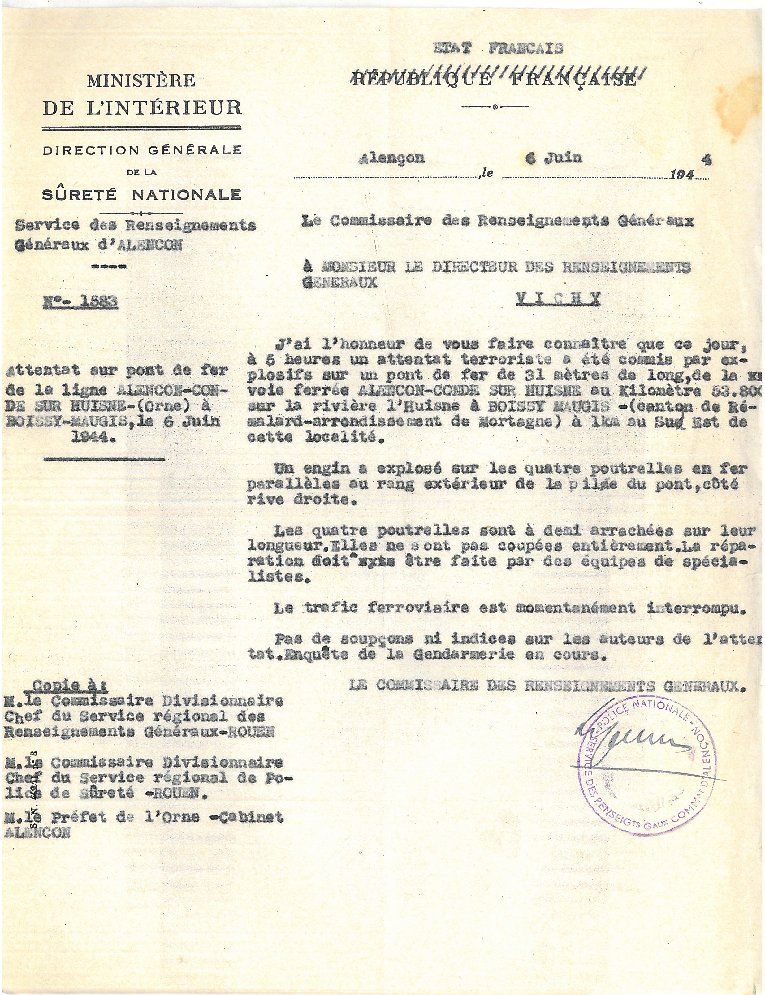 Un sabotage sur la voie ferrée Alençon - Condé-sur-Huisne le 6 juin 1944