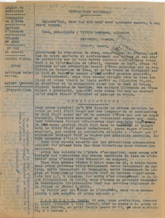 Le document présenté ici est le procès-verbal réalisé par les gendarmes venus mener l’enquête (le document en intégralité est disponible ci-dessus en version pdf). Ils interrogent les « requis » à la garde de la voie, c’est-à-dire les habitants des environs qui étaient contraints de surveiller les voies ferrées. Personne n’a rien vu, ou personne ne parle.
