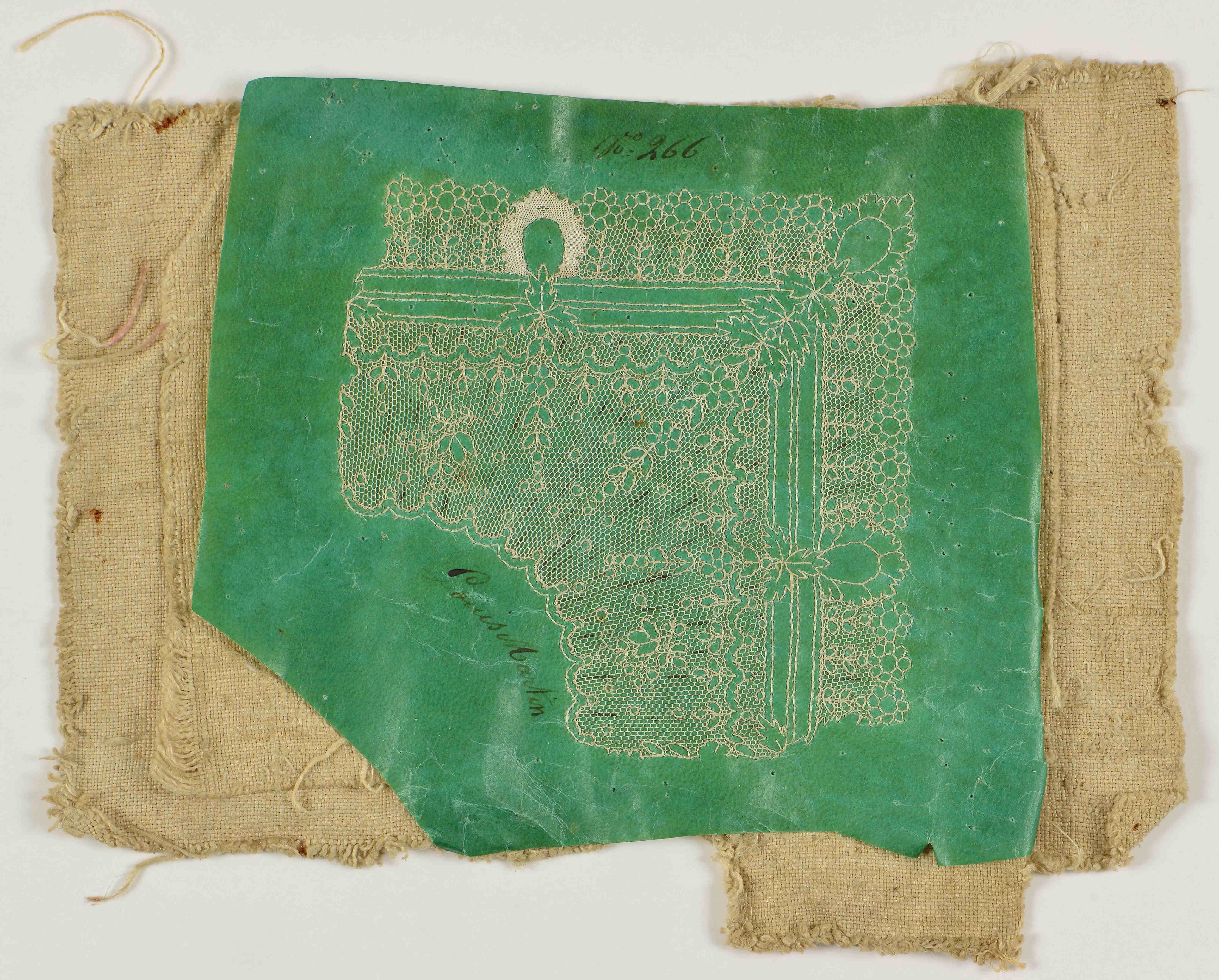 Ce vélin de dentelle, sans doute un motif de mouchoir, fait partie d’une collection de quarante-six documents entrés en 2010 aux Archives de l’Orne. Marqué au nom de Louis Martin (1823-1894), il constitue un témoignage tangible de l’activité dentellière des époux Martin, parents de sainte Thérèse de l’Enfant Jésus.