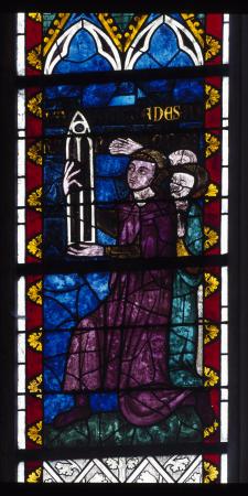 Vitrail de la cathédrale de Sées offert par la confrérie des drapiers de Sées, XIIIe s