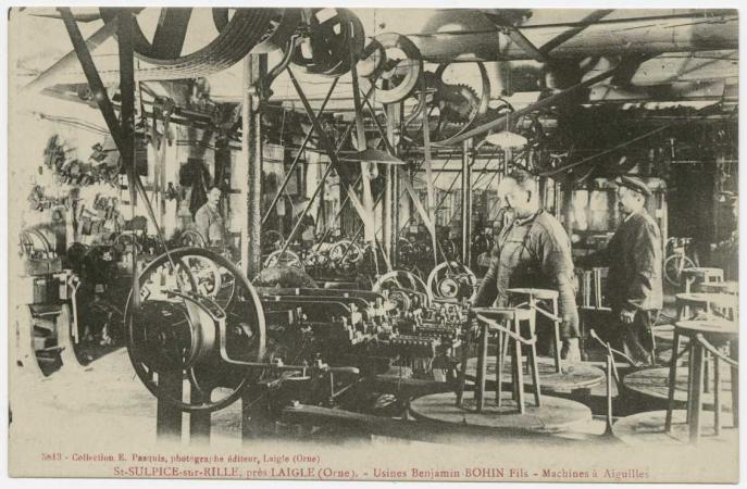 Cette carte postale prise par Eugène Pasquis au début du XXe siècle montre la fabrication des aiguilles qui deviennent la spécialité de l'entreprise Bohin.