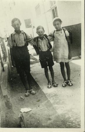 La photographie, issue des archives privées d'Evelyne Kahn, montre les trois enfants de la famille Bonnem dans une rue ou une arrière-cour de Tel Aviv, par une journée ensoleillée. Equipés de leur cartable à bretelles, les enfants vont à l’école ou en reviennent. On reconnaît, de gauche à droite : Berthold, alors âgé de 11 ou 12 ans, Edith 10 ou 11 ans, et Rudolph, 8 ou 9 ans. La photographie a peut-être été prise à la rentrée 1936.